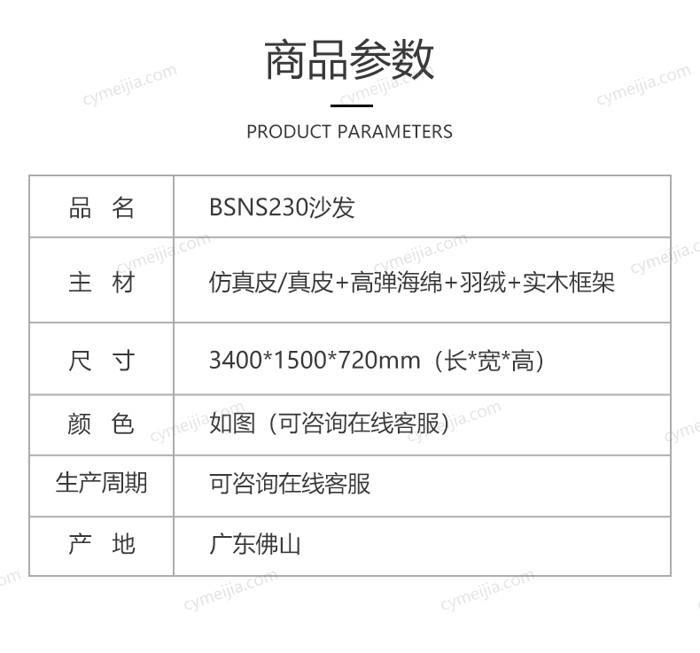 | 产品材质 : | 仿真皮+羽绒+高密度海绵+俄罗斯落叶松实木框架 |