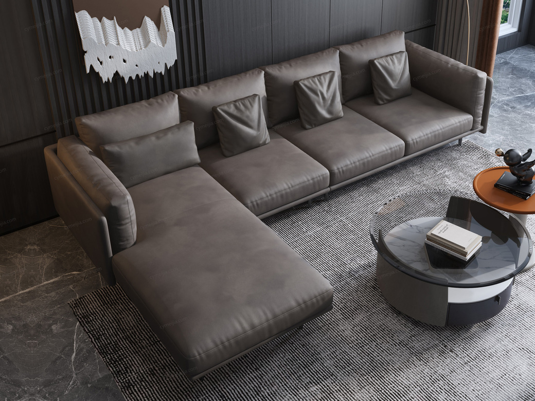 | 产品材质 : 接触面进口头层黄牛皮+羽绒靠包/座包+高密度海绵+四面刨光桉木方加松木方+进口4.0蛇形弹簧+加宽橡筋 | 包件数 : 4 | 包装体积(m3) : 2.46 | |