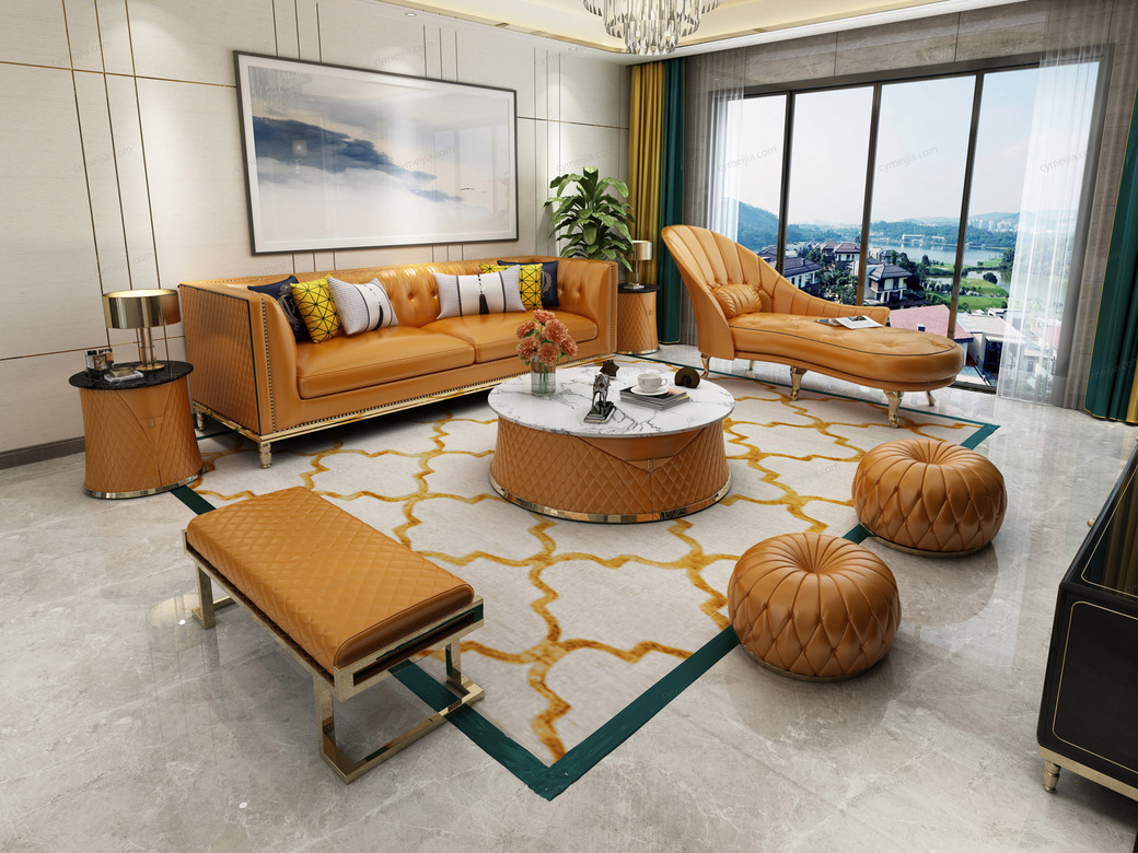 | 产品材质 : 仿真皮+高密度海绵+俄罗斯落叶松实木框架+不锈钢镀金 | 包件数 : 3 | 包装体积(m3) : 2.76 | |