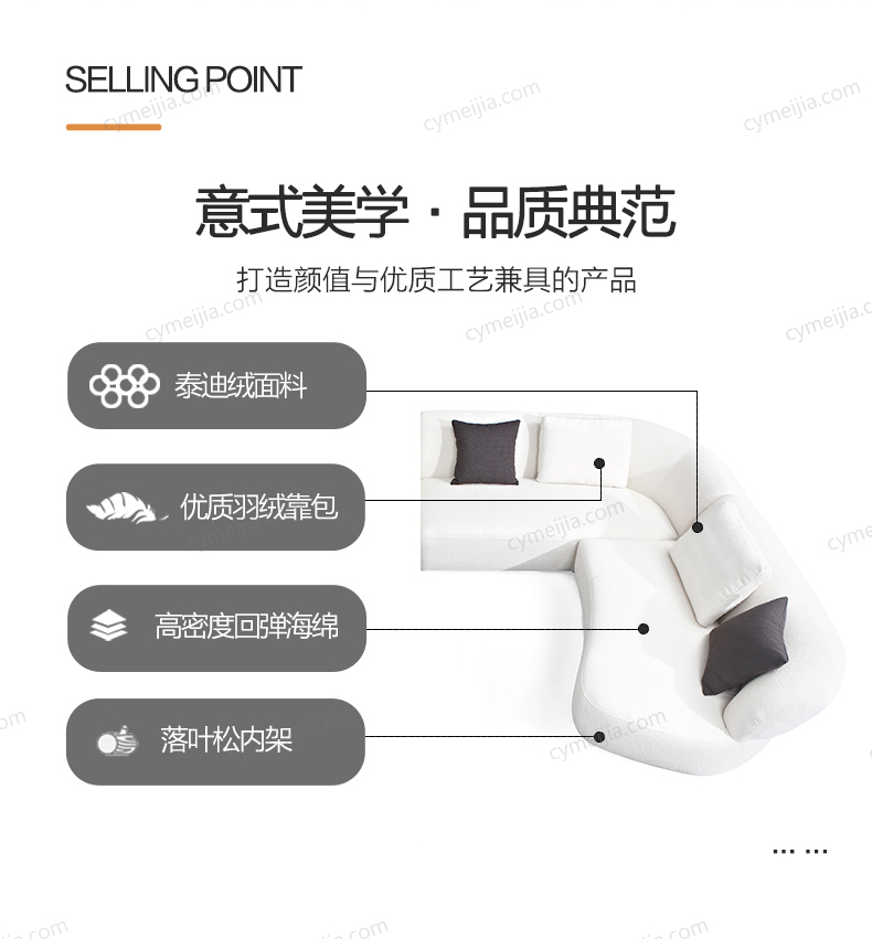 | 产品材质 : | 泰迪绒绒布+羽绒+高密度海绵+俄罗斯落叶松实木框架 |