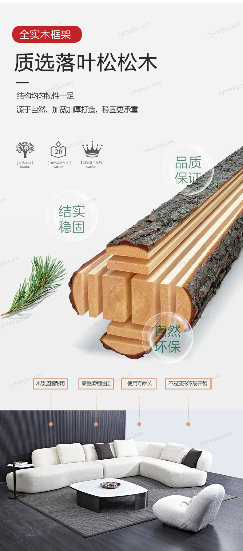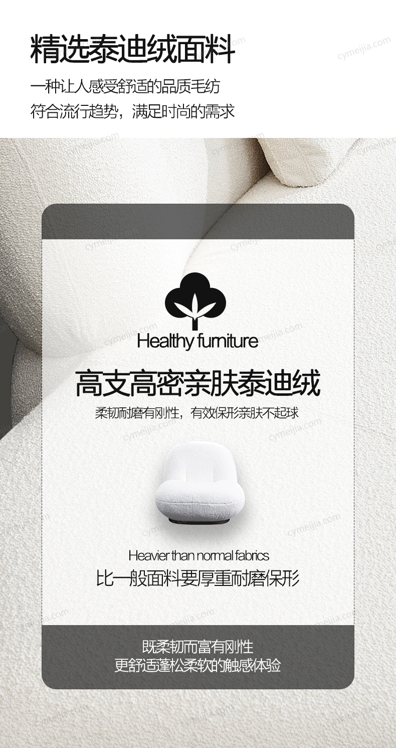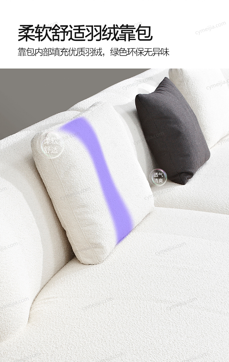 | 产品材质 : | 泰迪绒绒布+羽绒+高密度海绵+俄罗斯落叶松实木框架 |