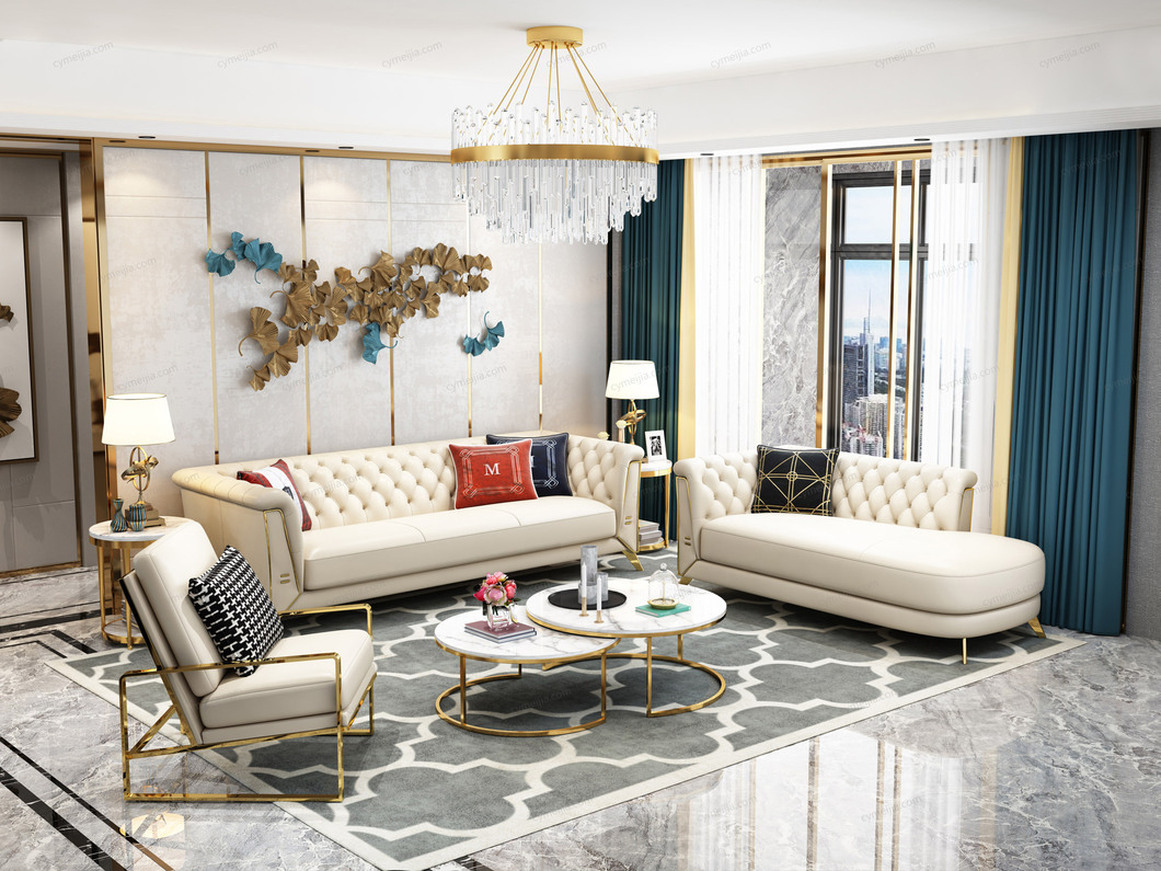 | 产品材质 : | 进口头层黄牛皮(接触面)+仿真皮(非接触面)+高密度海绵+俄罗斯落叶松实木框架+不锈钢镀金 |