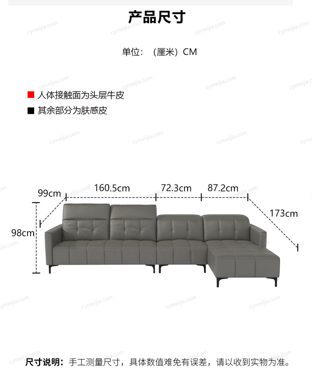 | 产品材质 : TE进口头层黄牛皮+环保皮+俄罗斯进口云杉木+东亚海绵 | 包件数 : 3 | 包装体积(m3) : 4.32 | |