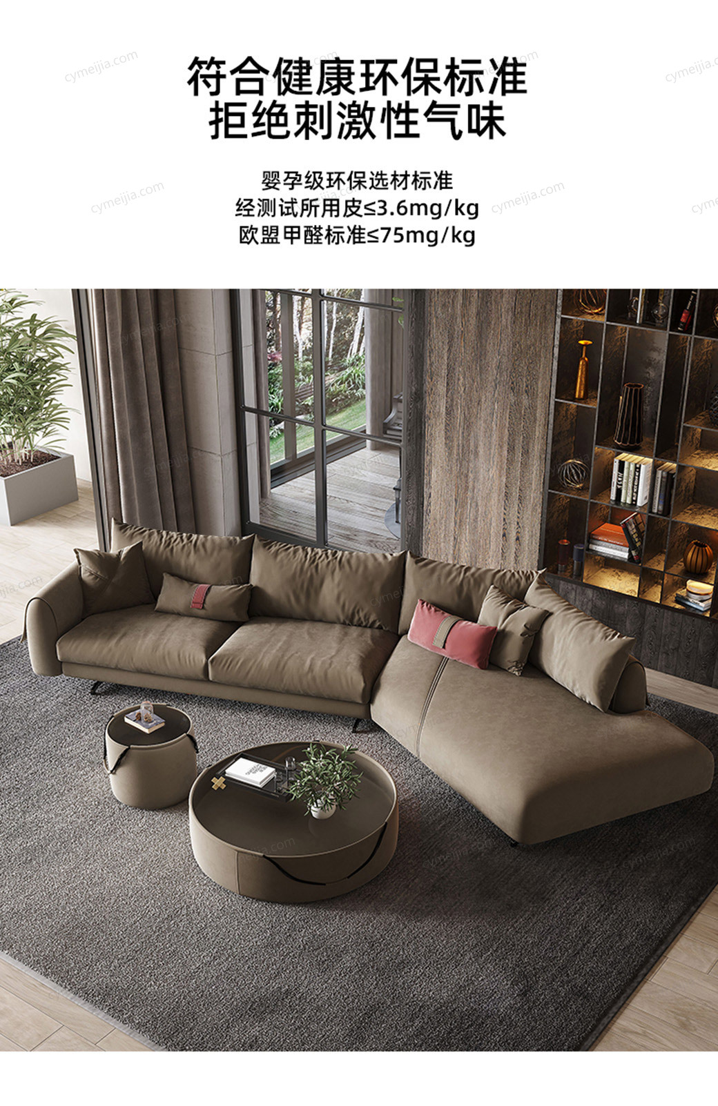 | 产品材质 : 接触面进口头层黄牛皮+羽绒座包/靠包+高密度海绵+俄罗斯落叶松实木框架+实木刨方+碳素钢脚 | 包件数 : 2 | 包装体积(m3) : 2.88 | |