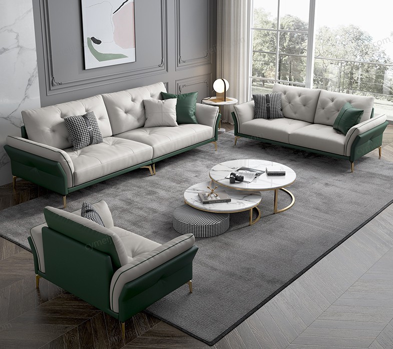 | 产品材质 : | 接触面进口头层黄牛皮+羽绒座包/靠包+高密度海绵+俄罗斯落叶松实木框架+不锈钢渡金脚 |