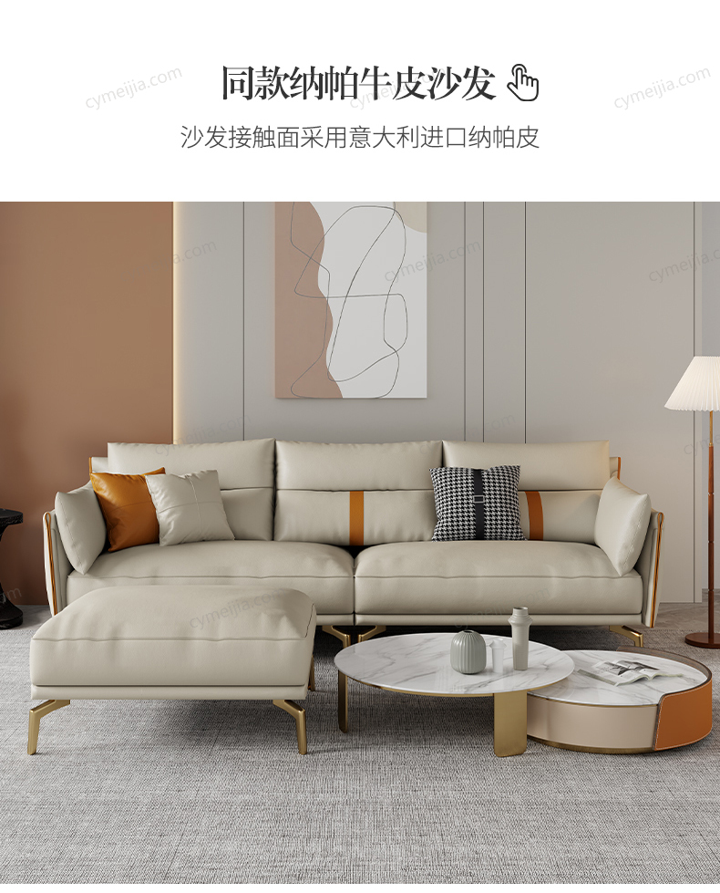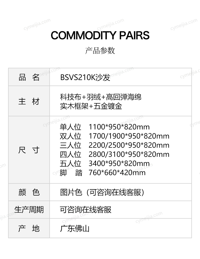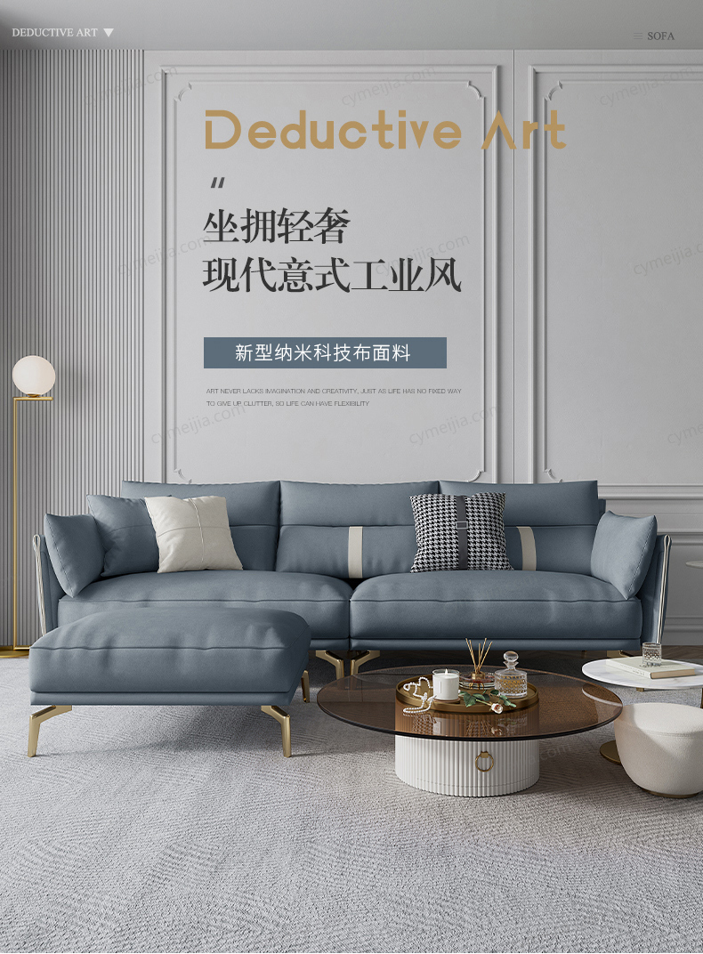 | 产品材质 : | 科技布+羽绒+高密度海绵+俄罗斯落叶松实木框架+五金镀金脚 |