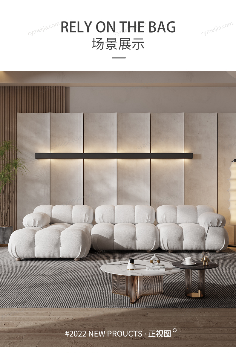 | 产品材质 : 泰迪圈圈绒+一体发泡定型棉+高密度海绵+俄罗斯落叶松实木框架 | 包件数 : 2 | 包装体积(m3) : 2.64 | |