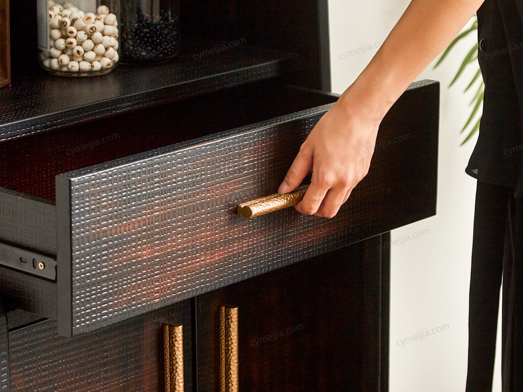 | 产品材质 : | 表面微雕进口橡胶木+金属拉手+复合金属脚+优质金属漆+装饰铜件 |