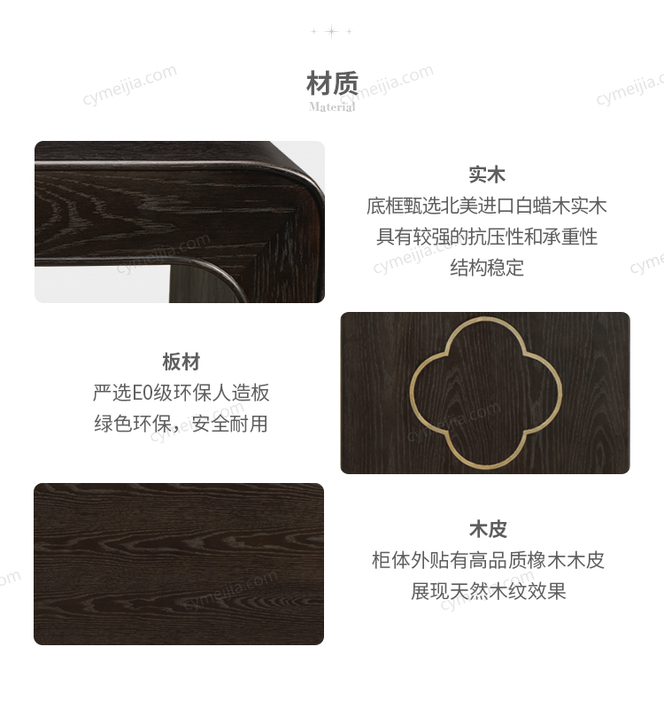 | 产品材质 : | 白蜡木+橡木皮+环保板材+金属装饰 |