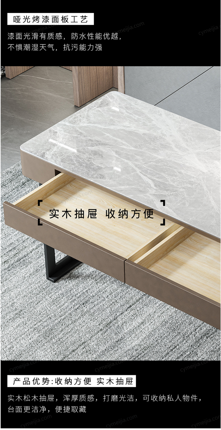 | 产品材质 : | 岩板+实木抽屉+哑光烤漆+碳素钢脚 |