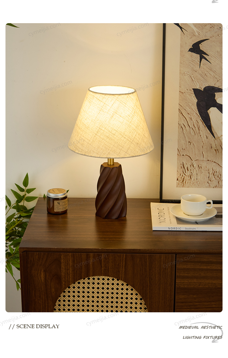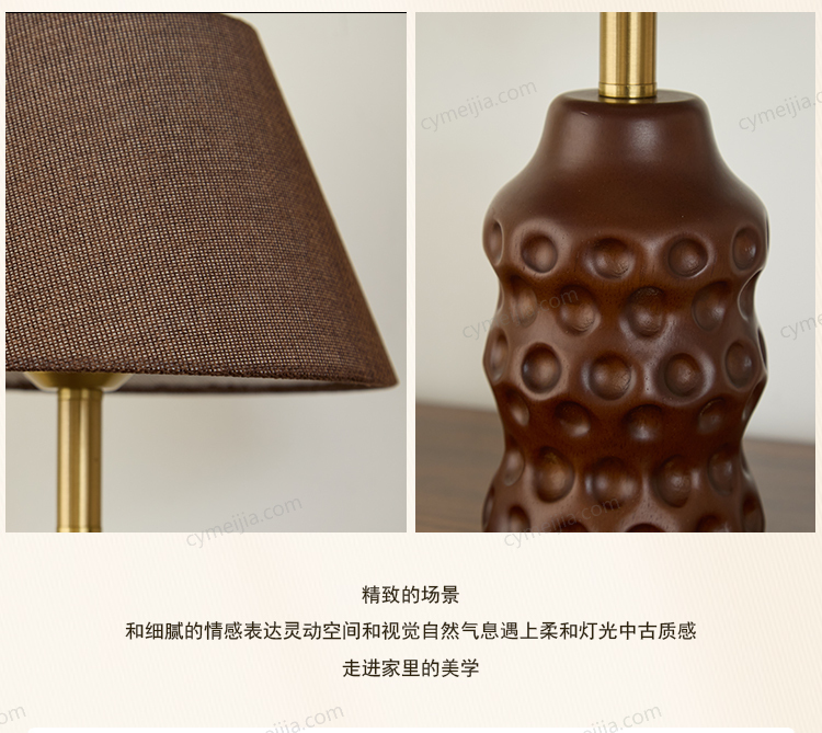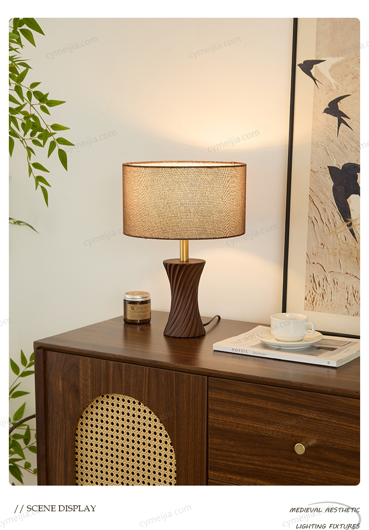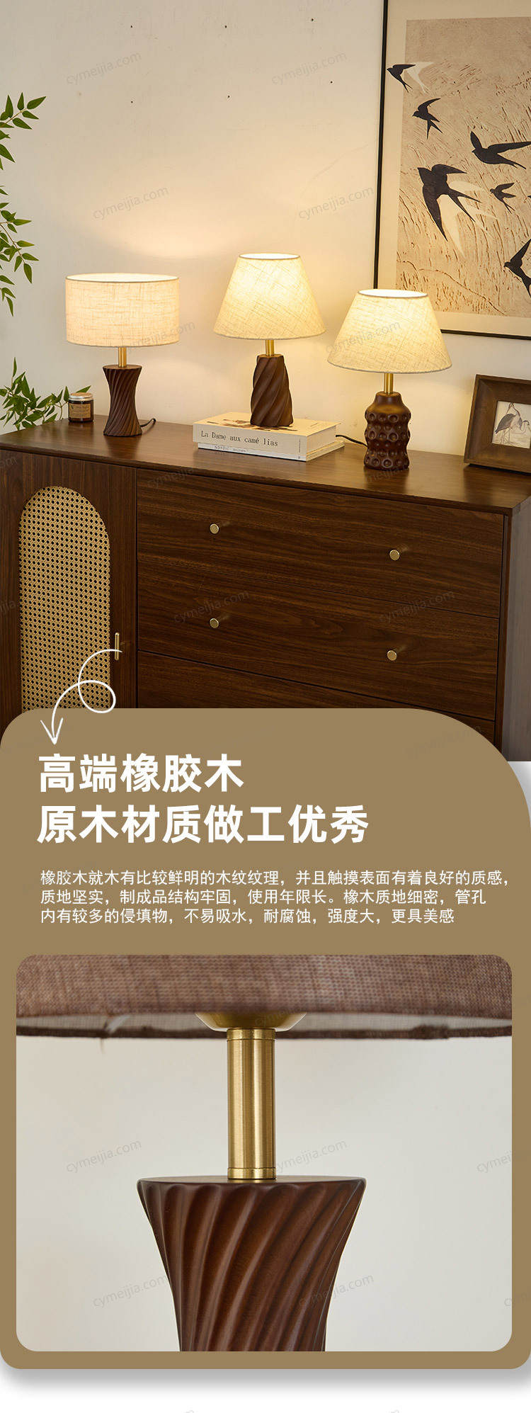 | 产品材质 : | 橡胶木(实木)+浮雕工艺+铁艺电镀+麻艺布罩 |