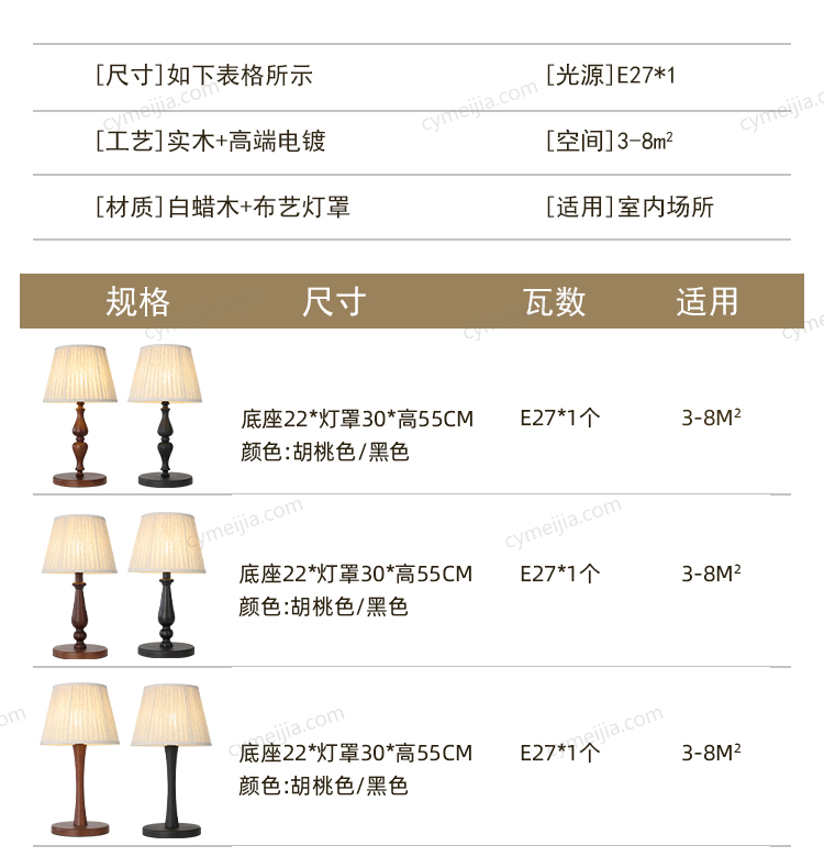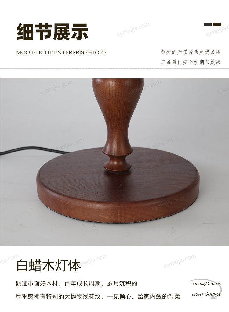 | 发货周期 : 5-7天内 | 产品材质 : 白蜡木+布艺灯罩 | 产地 : 中山 | |