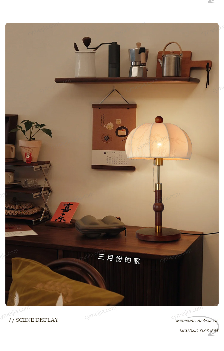 | 产品材质 : | 白蜡木+铝材+布艺灯罩 |