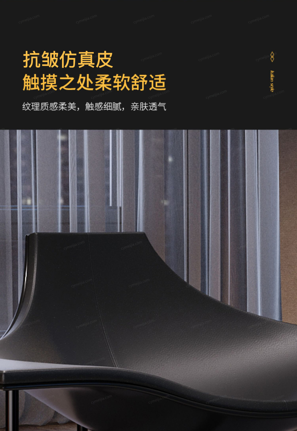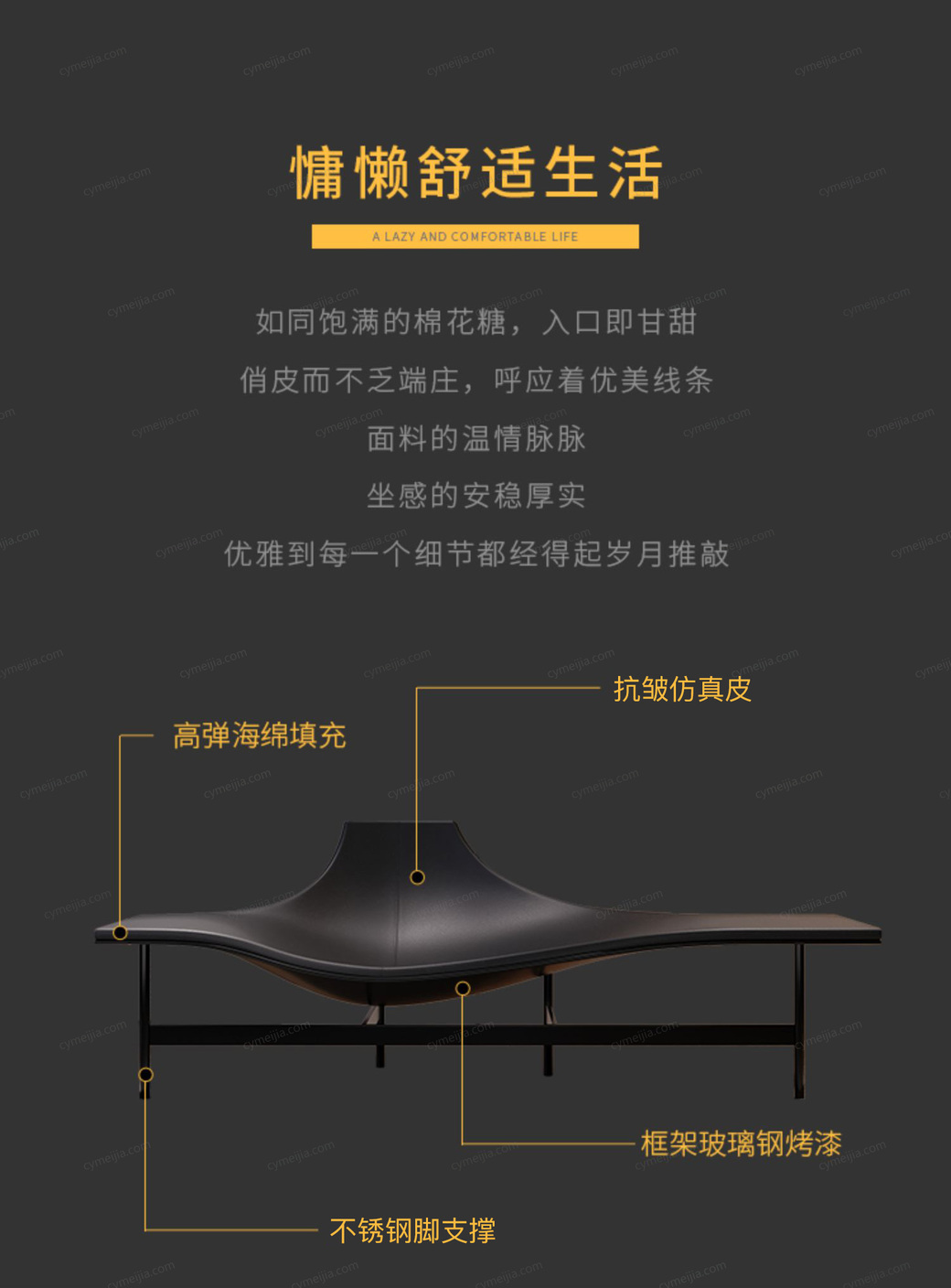 | 产品材质 : | 仿真皮+高密度海绵+玻璃钢+不锈钢黑钛脚 |