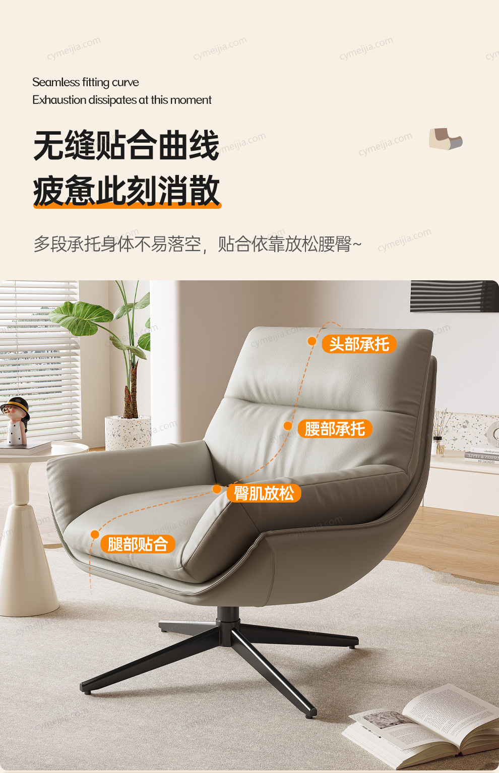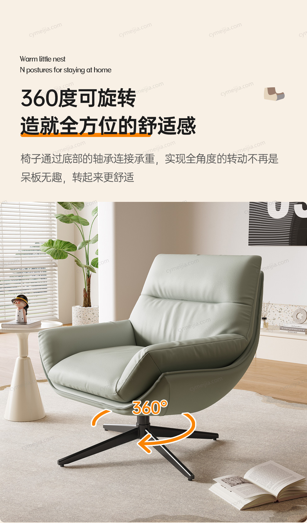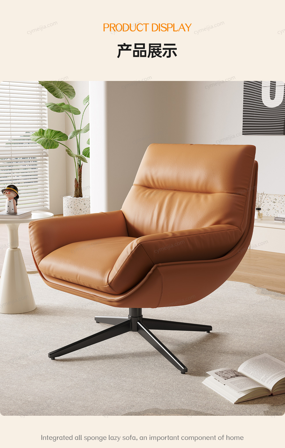 | 产品材质 : | 生态皮+羽绒+3A公仔棉+木架+碳素哑黑五金脚可转动 |