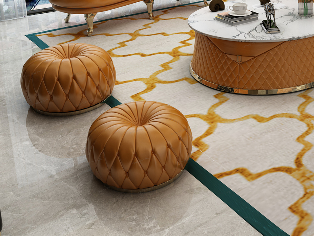 | 产品材质 : | 仿真皮+不锈钢镀金+俄罗斯进口松木框架+高密度海绵 |