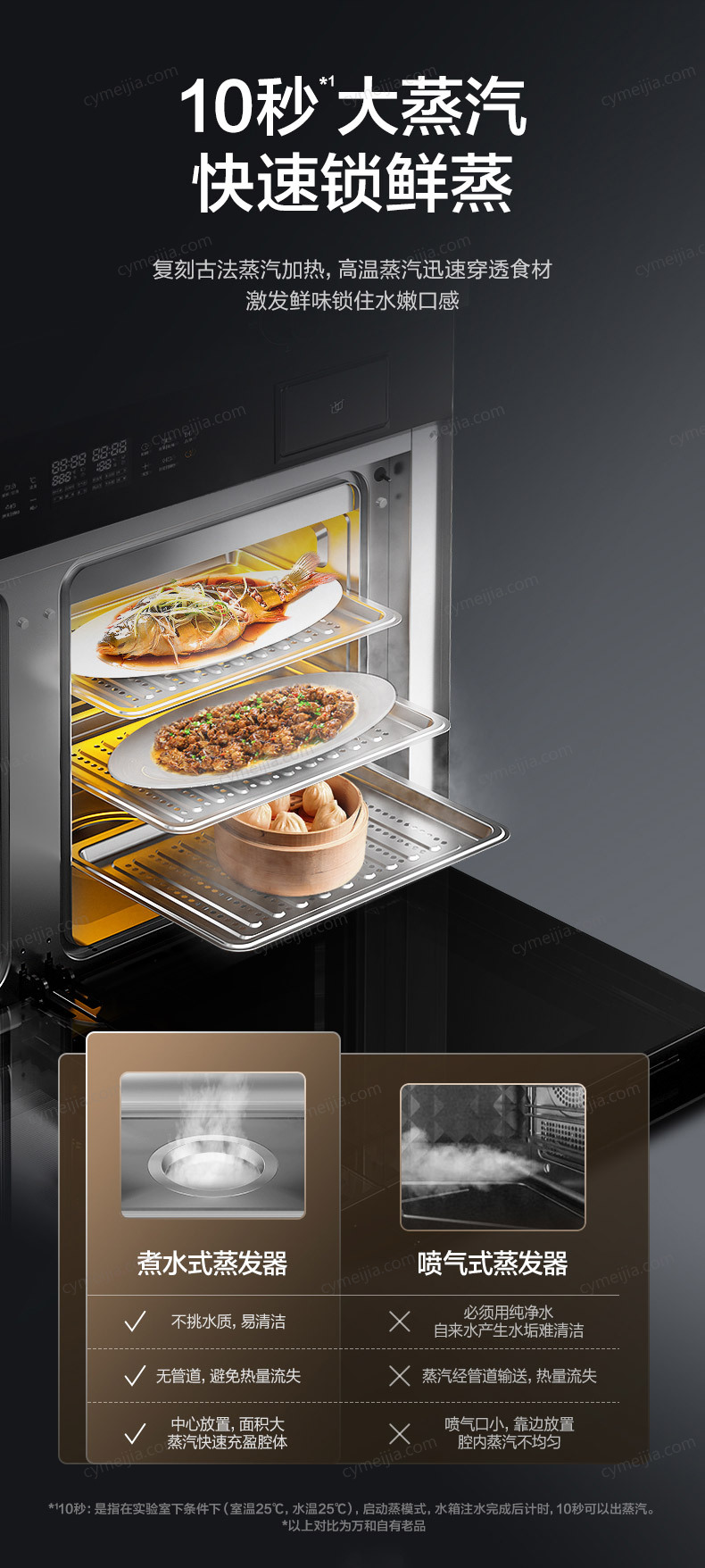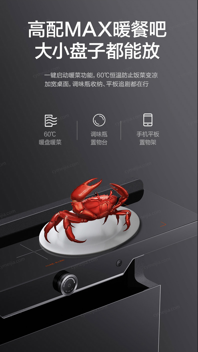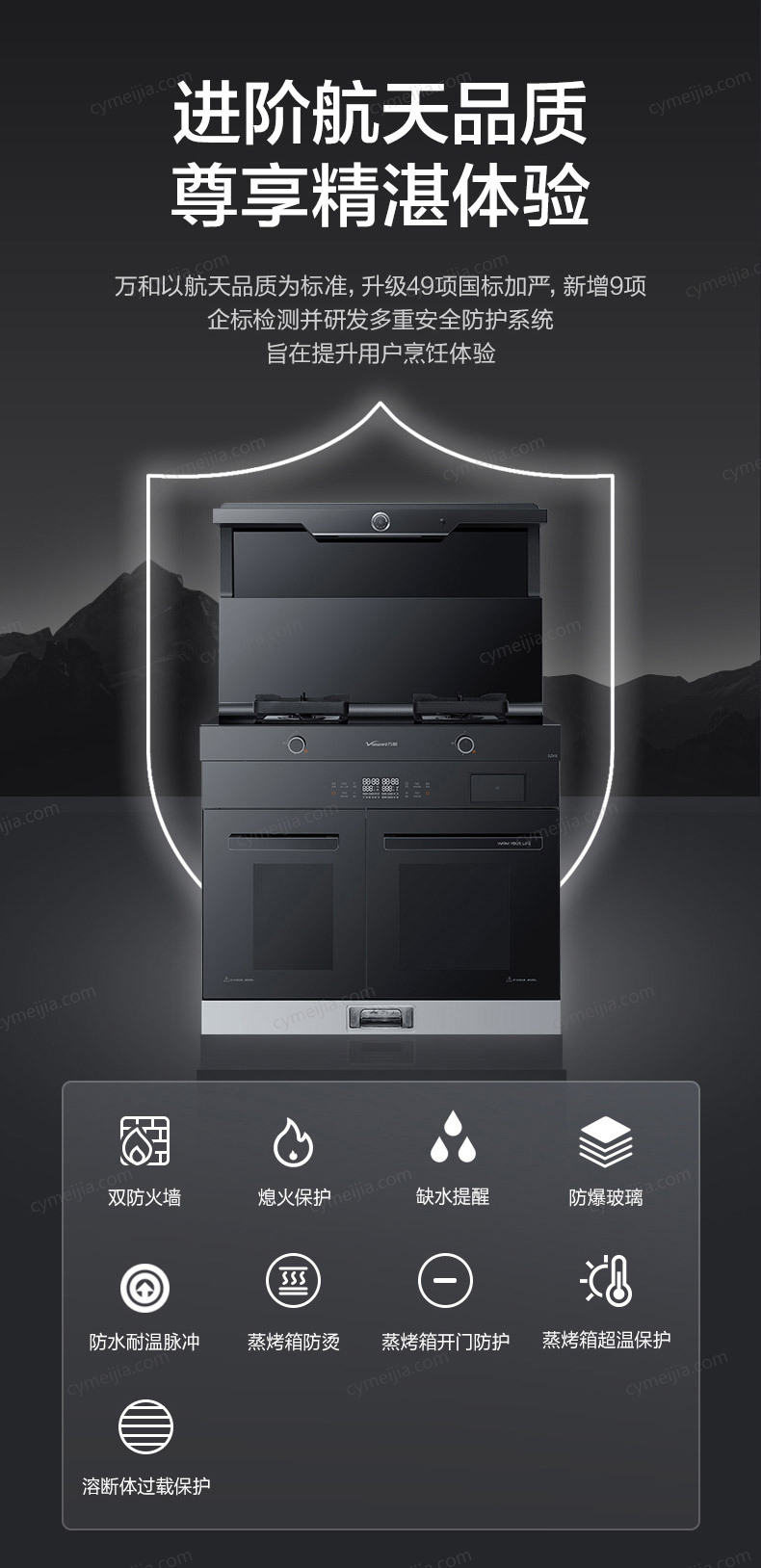 | 产品功能 : | 1)蒸烤炸双腔;2)5.2kW大火力,搭载鼓风燃烧技术,让您的烹饪更加迅猛;3)拥有语音交互功能,解放双手同时提升厨房科技感;空气炸和制干果功能,口油低脂口感好,满足全家老小日常所需;4)拥有双灶独立定时功能,无需等待,到点自动关火;导烟板采用纳米易洁涂层材质,一抹即净;5)烤炸箱采用搪瓷陶晶内胆,耐高温耐腐蚀,不沾油污,一抹即净;气电分离技术,注重产品的安全性能,保障使用安全;6)20m3/min风量、500Pa强压技术,瞬吸秒排;7)头部带有MAX暖餐吧,空间利用率更高,实现饭菜长效保温;8)高温热干洗技术,一键自清洁;9)双重防火墙设计,能够及时检测燃气泄漏并发出警报; |