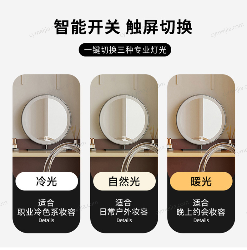 | 产品材质 : | 实木脚+烤漆+三色可调节发光镜+实木多层板 |