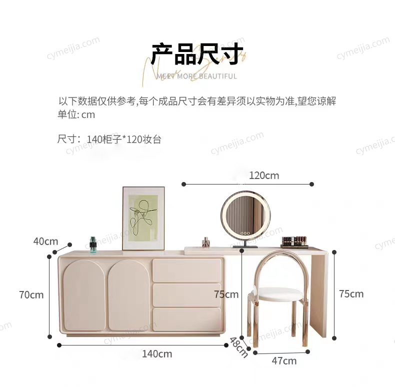 | 规格 : | 妆柜:长1400*宽400*高700mm;妆台:长1200*宽400*高750mm |