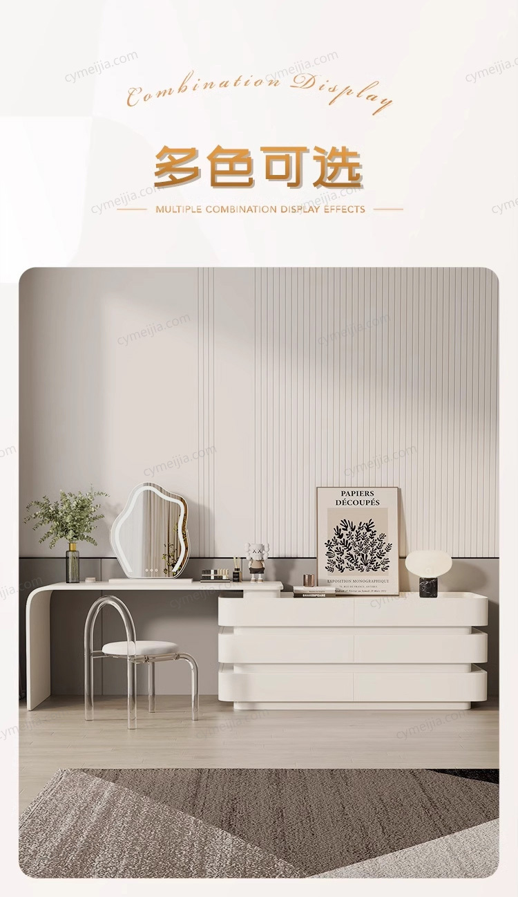 | 规格 : 妆柜:长1300*宽400*高690mm;妆台:长1200*宽400*高750mm | 发货周期 : 25-30天内 | 产品材质 : 雪山石哑光岩板+实木多层板+金属烤漆 | |
