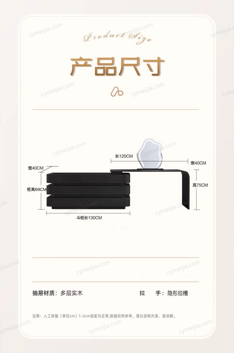 | 规格 : | 妆柜:长1300*宽400*高690mm;妆台:长1200*宽400*高750mm |