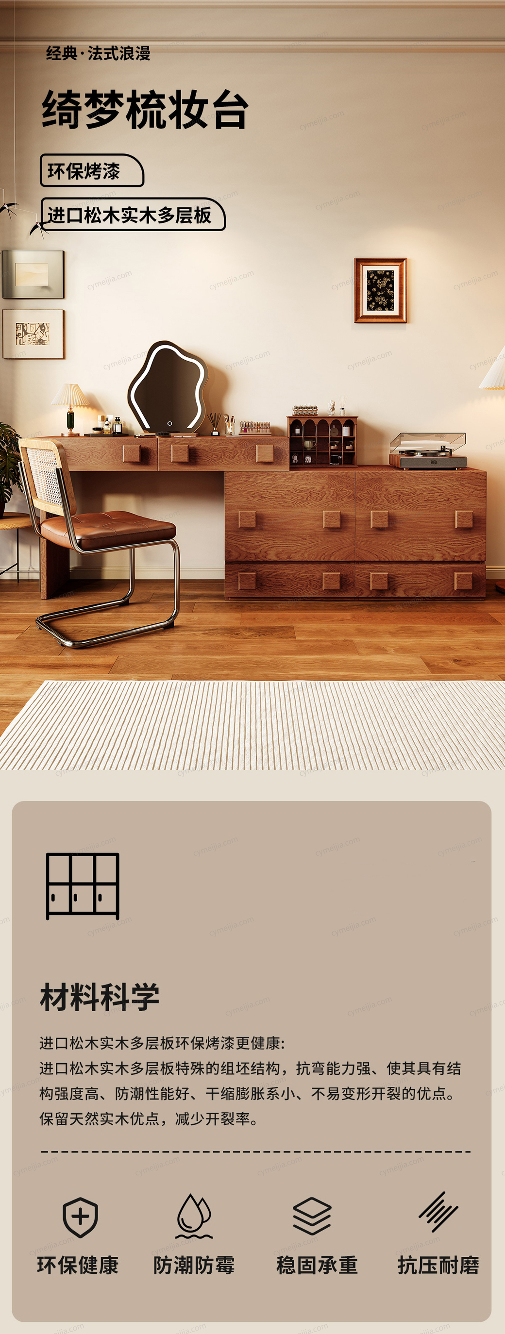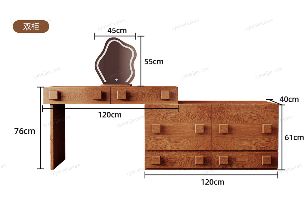 | 规格 : | 妆柜:长1200*宽400*高610mm;妆台:长1200*宽400*高760mm |