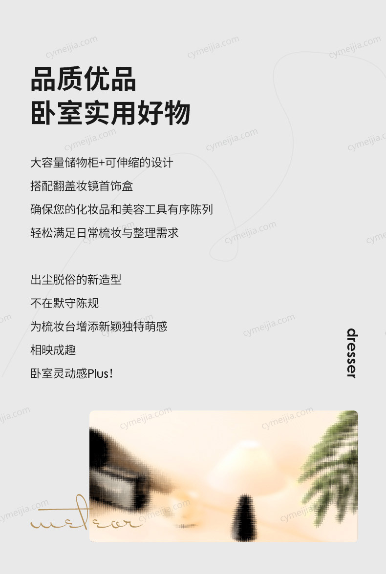 | 规格 : | 妆柜:长600*宽400*高620mm;妆台:长800*宽400*高750mm |