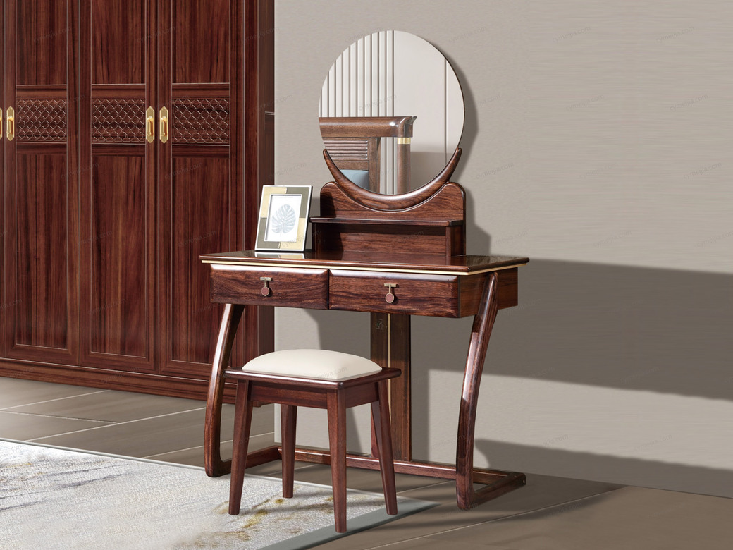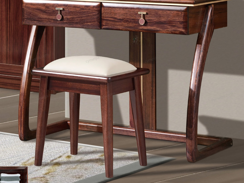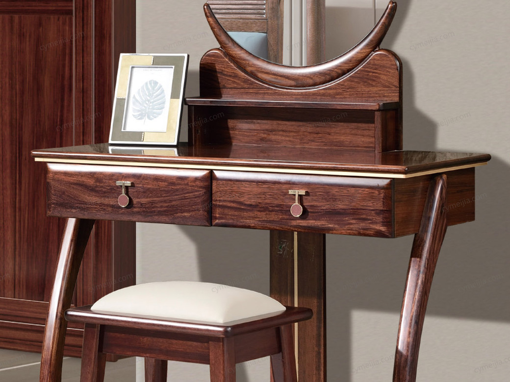 | 产品材质 : | 妆台:进口乌金木+实木多层板;妆凳:进口乌金木+实木多层板+仿真皮+高密度海绵 |
