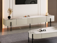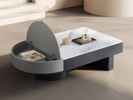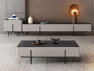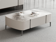 【全屋14件套】像素豆腐块功能沙发、鹅卵石茶几、香奈儿亮光岩板面高脚电视柜、微晶石餐桌椅、进口头层真皮床、高定头层真皮床、全实木床头柜