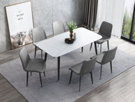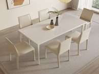 【全屋14件套】羽绒真皮沙发、微晶石茶电、香奈儿亮光岩板餐桌椅、欧姆真皮床、仿真皮软床、全实木床头柜